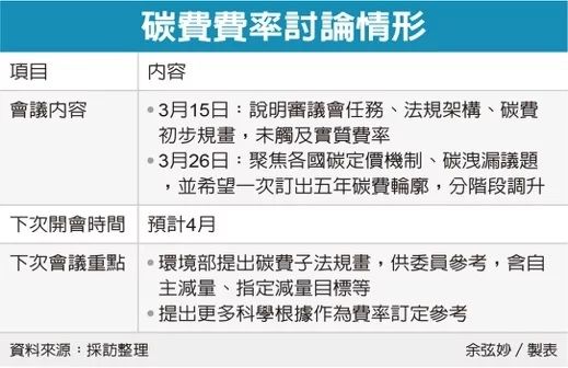 据悉,昨日审议会21位委员共19位出席,约进行三小时,主要聚焦邻近国家碳定价机制,包含日本、南韩、新加坡,都是参考对象。