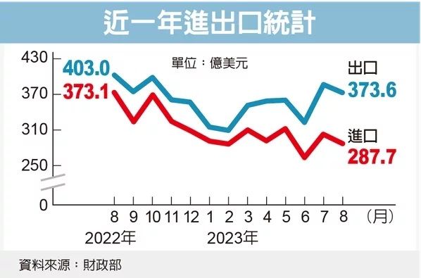 另外8月進口287.7億美元,年減22.9%,連十黑;出超85.9億美元,則創歷年單月新高。