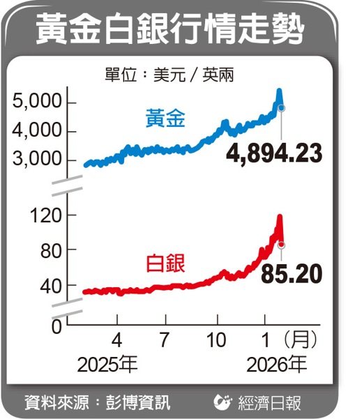 2026-02-02 經濟日報 編譯湯淑君/綜合外電被視為鷹派的前聯準會(Fed)理事華許獲提名為新Fed主席,美元應聲勁場,讓「貶值交易」為之洩氣,黃金和白銀價格30日雙雙暴跌,翻轉本月來迭創新高的凌厲漲勢。