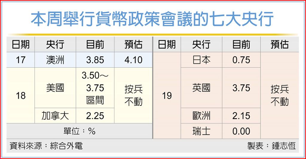 通膨疑慮…七大央行觀望氣氛濃