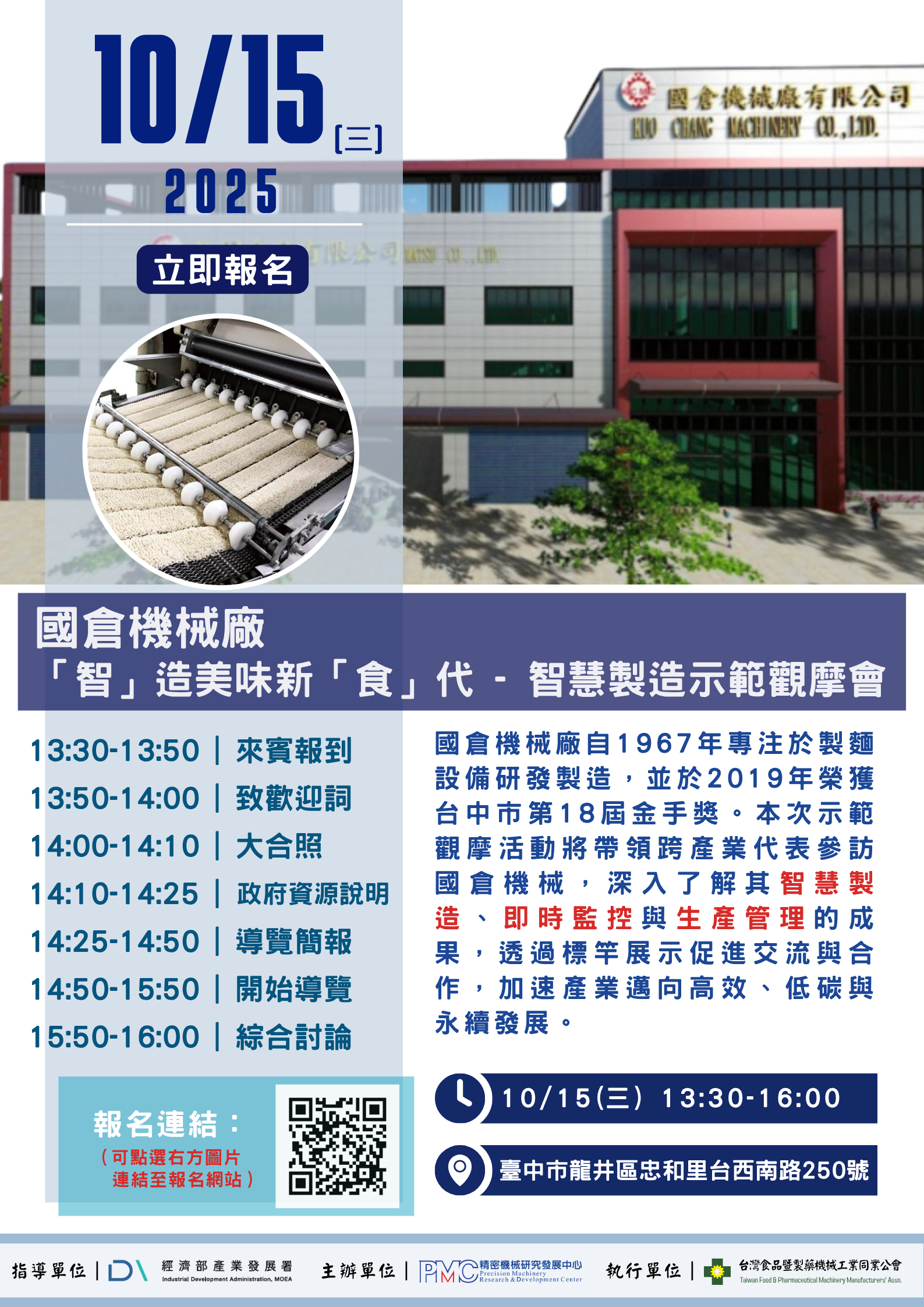 10/15(三)「 國倉機械廠「智」造美味新「食」代 - 智慧製造示範觀摩會 」